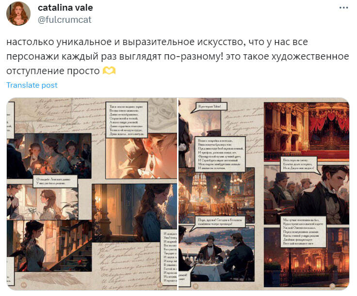 В начале года разгорелся целый скандал вокруг издательства АСТ, которое выпустило комикс по «Евгению Онегину». Издательство заподозрили в том, что изображения сделаны при помощи нейросети (источник) Возможно, иллюстраторы не согласились рисовать комиксы за те же деньги, что подписка на нейросеть.
